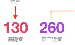在音樂術語中我們常常把這一大堆頻率當中最低的那一個叫做「基礎音」,然後上面的那一大堆基礎音的整數倍頻率就叫做「泛音」,我們的大腦聽到這些聲音的時候,會自動把基礎音的頻率理解成音高,然後把其他的泛音理解成音色。