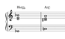 接下來的三個小節,連續出現了三個痛苦糾結的和弦:首先是 F♯dim7,然後是帶有和聲外音的 Cm/G,接著又是一個類似減七和弦的東西。