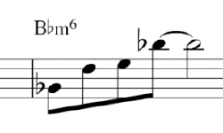 決定好主音和調式之後,你就有一串音階可以用了。接下來我們要從這個音階裡面,隨機挑選四、五個音當作左手伴奏。Dorian 最重要的特色音就是它的大六度音(在此例為 A),所以我會確保有選到這個音。