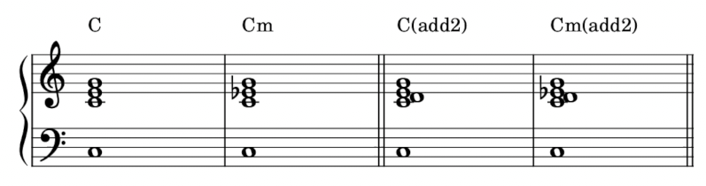 你看,不論是大三和弦還是小三和弦,只要加了一個二度音(add2)之後,馬上就有成熟大人的感覺了對不對!