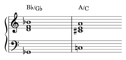 至於「現在」我最喜歡的和弦是什麼呢?絕對是 Bb/Gb 和 A/C!