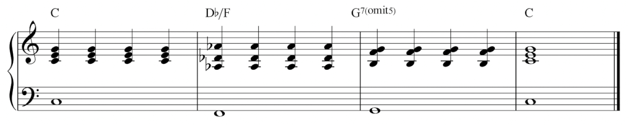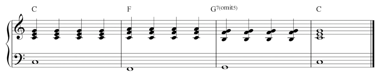 實際試試看!例如說我有一個 C - F - G7 - C 的和弦進行: