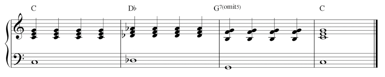 拿坡里和弦最特別的地方是在於它用了「不應該出現」的音。像 C 大調的拿坡里和弦是 Db 和弦 Db F Ab