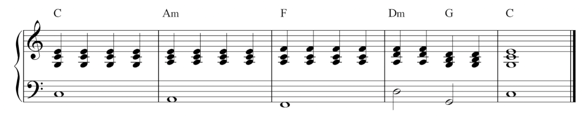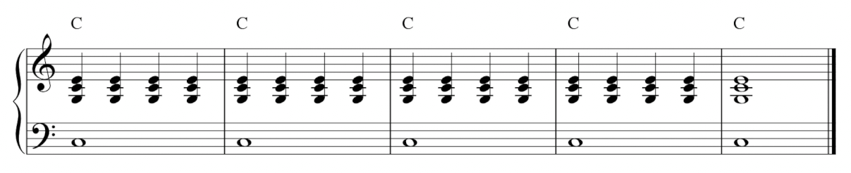 假設我們的曲子裡,有一個長達四小節的 C 和弦。